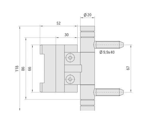 Für Holzhaustüren; zweidimensional verstellbar mit wartungsfreier Gleitlagertechnik; Seite, Andruck /- 3 mm, Rollenlänge 86 mm, Rollen-Ø 20 mm; einsetzbar für Systemprüfungen nach DIN V EN 1627 ff.