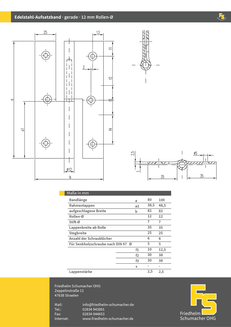 Für stumpfe Türen, gebohrt, gerade, Schrauben-Ø 4,5 mm,