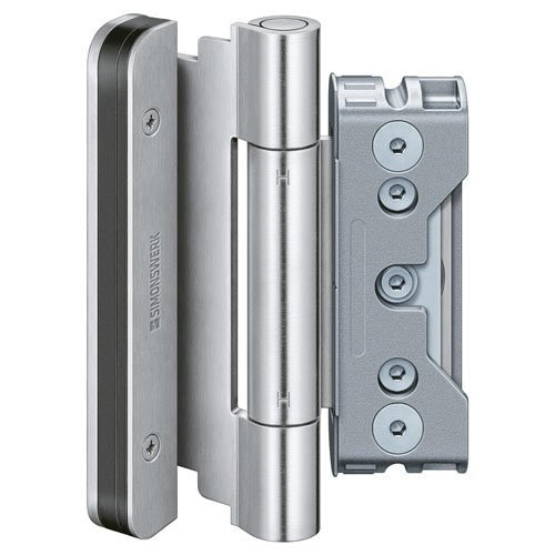 • SIMONSWERK Holzhaustürband BAKA Protect 4010 3D FD mit verdeckt liegendem Aufnahmeelement im Flügel und Rahmen für Türen mit Flügeldichtung. CE-zertifiziert, Belastungswert 160 kg, Komfort-Exzenter-Verstellung, Rollenlänge 140 mm, Rollendurchmesser 20 mm, DIN rechts und links verwendbar. Dreidimensional verstellbar: Höhe +/-3,0 mm, Seite +/-3,0 mm, Andruck +/-3,0 mm. Wartungsfreie Gleitlagertechnik. Viertes Zusatzband unter BAK008-(). Oberfläche Topzink