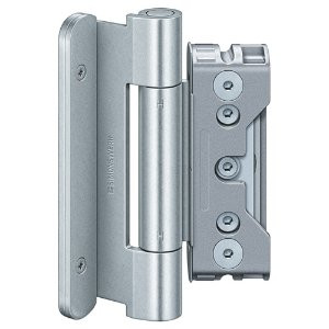 SIMONSWERK Holzhaustürband BAKA Protect 4010 3D FD mit verdeckt liegendem Aufnahmeelement im Flügel und Rahmen für Türen mit Flügeldichtung. CE-zertifiziert, Belastungswert 160 kg, Komfort-Exzenter-Verstellung, Rollenlänge 140 mm, Rollendurchmesser 20 mm, DIN rechts und links verwendbar. Dreidimensional verstellbar: Höhe +/-3,0 mm, Seite +/-3,0 mm, Andruck +/-3,0 mm. Wartungsfreie Gleitlagertechnik. Dies ist ein viertes Zusatzband zu den BAK007-() Garnituren. Oberfläche Topzink