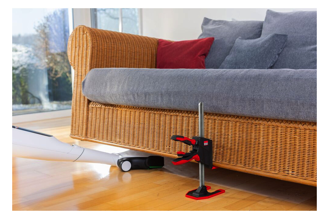 - durch den schnellen, werkzeuglosen Umbau zum Spannen für Arbeiten mit einem Nutzbereich von 170 bis 390 mm
