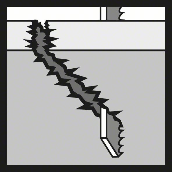 - Die große progressive Zahnteilung des Blatts (4-5,2 mm) ermöglicht es, eine Vielzahl an Holzmaterialien mit einer Dicke von 5-50 mm zu schneiden