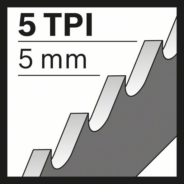 - Zudem entfernen die große Zahnteilung (5 mm) und großen Spanräume Material schnell und effizient
