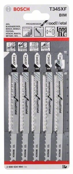 BOSCH Stichsägeblatt Progressor T 345 XF 5er Pack. Holz