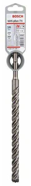 Bosch Professional Hammerbohrer 4-schneidig SDS-Plus 7X - 16,0:265/200mm mit Vollhartmetallkopf