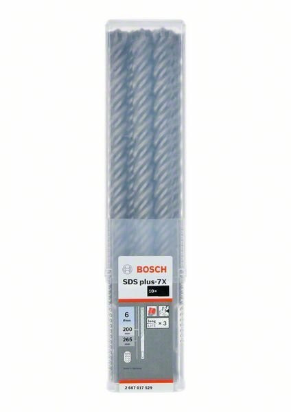 Bosch Professional Hammerbohrer 4-schneidig SDS-Plus 7X 6,0:265/200mm Vollhartmetalkopf 10er Pak