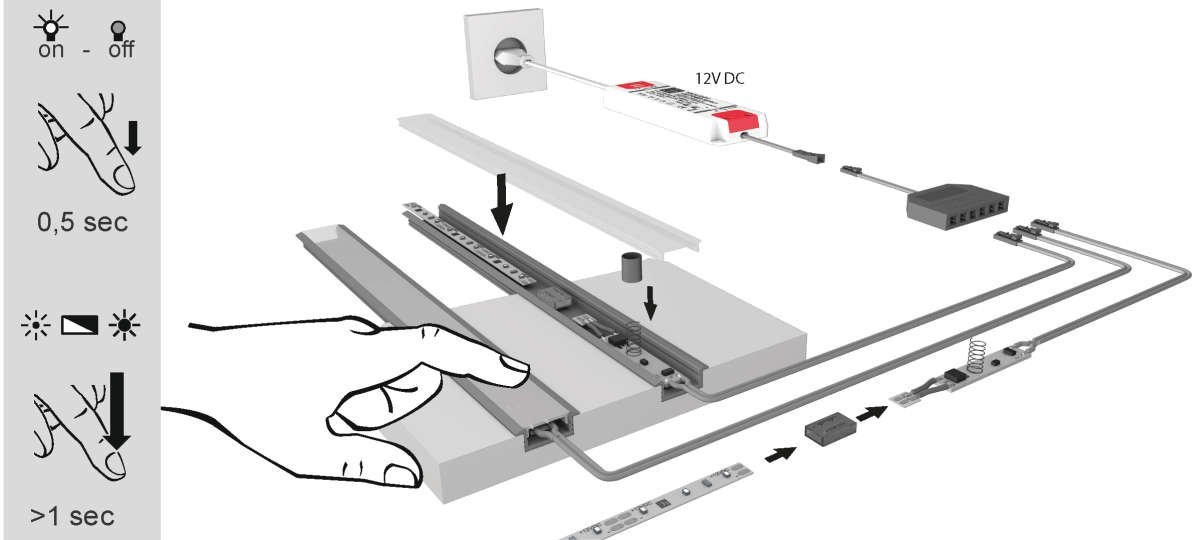 - Schaltet und dimmt Versa Leuchten durchBerührung