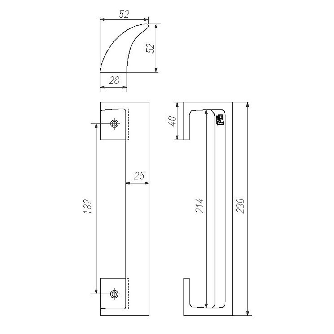 Dauby Möbelgriff "PMAF 230" - 230mm - Rohes Metall (RM)