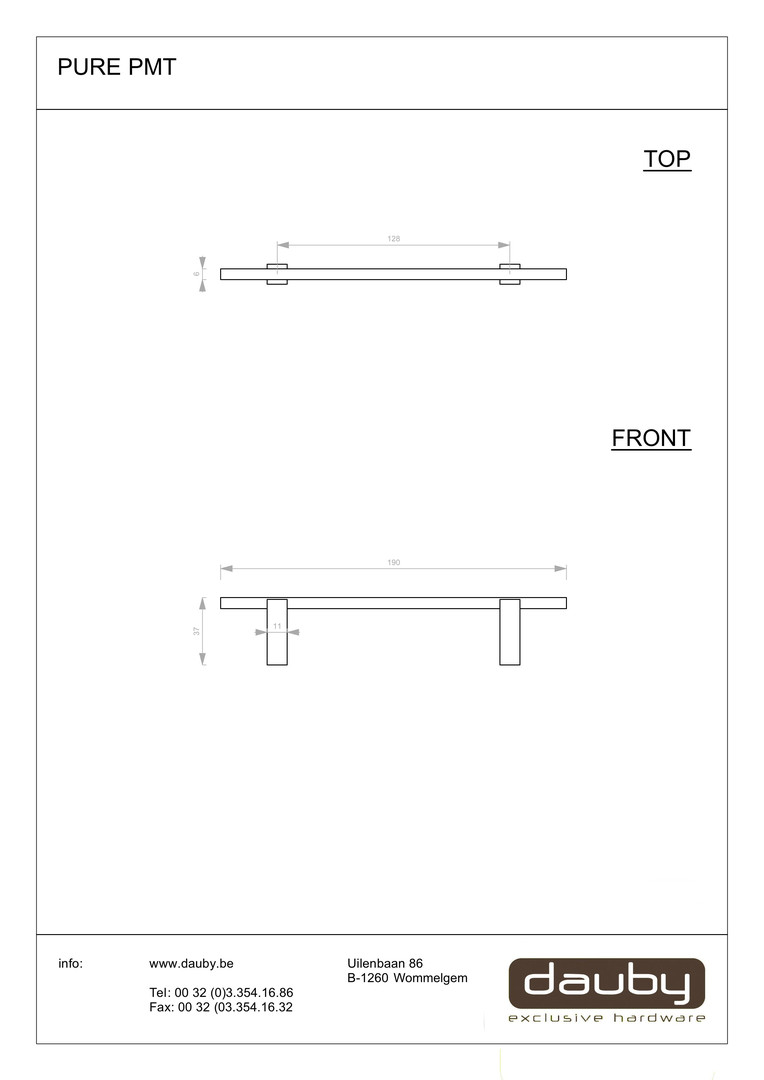 Dauby Möbelgriff "PMT" - 128mm - Rohes Metall (RM)