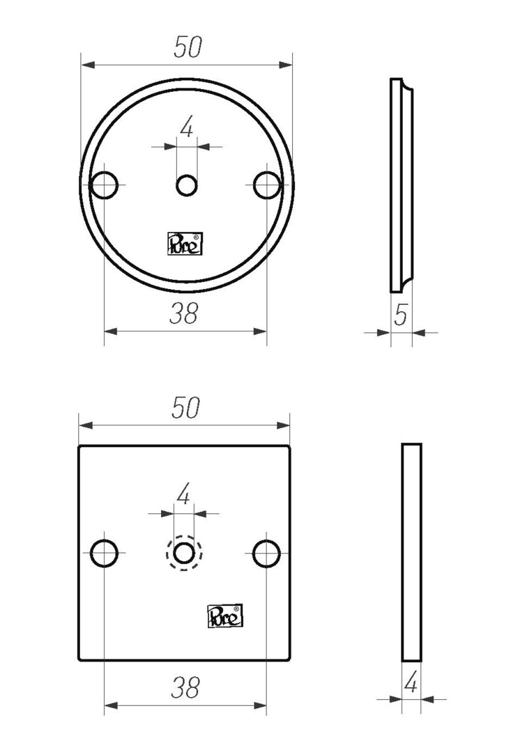 Alle Möbelknöpfe können mit einer quadratischen oder runden Rosette montiert werden.