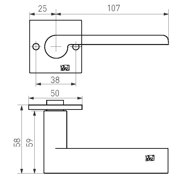 Dauby Türdrückerpaar "PH1928/50Q" - Rohe Bronze (RB)