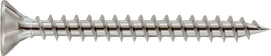 Die Spanplattenschrauben in V2A Edelstahl kommen mit einem Senkkopf für bündiges Abschließen mit der Oberfläche. Die Schrauben werden mit TORX betrieben.