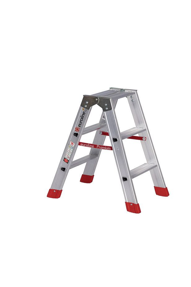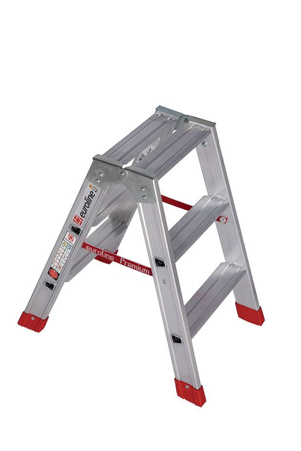 EUROLINE Alu-Stufenstehleiter verstärkt beidseitig 2x3 Stufen