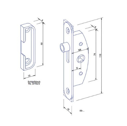 Einreiberschlößchen verz. 17mm Dorn m.Rollzapfen käntig
