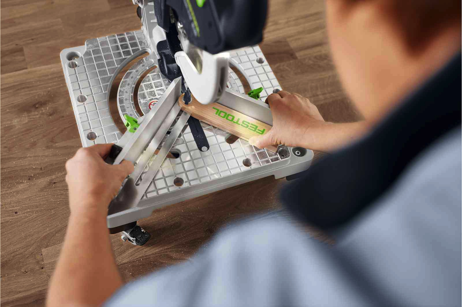 Exakt winkelhalbierend sägen - ohne rechnen: Mit dem symmetrisch laufenden Anschlagsystem gelingt euch das Sägen von Leisten für Innen- und Außenwinkel mühelos und mit nur einer Einstellung.