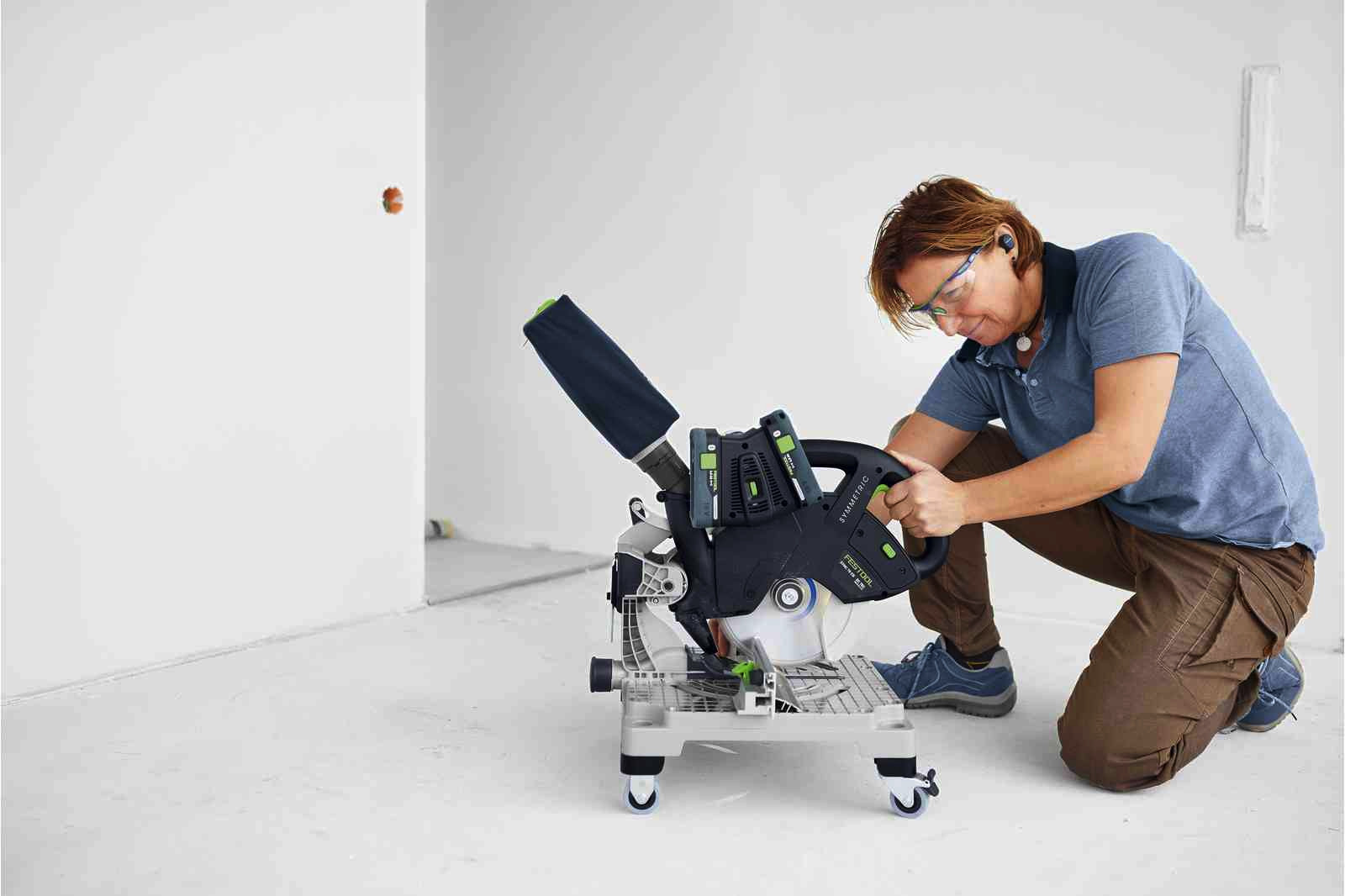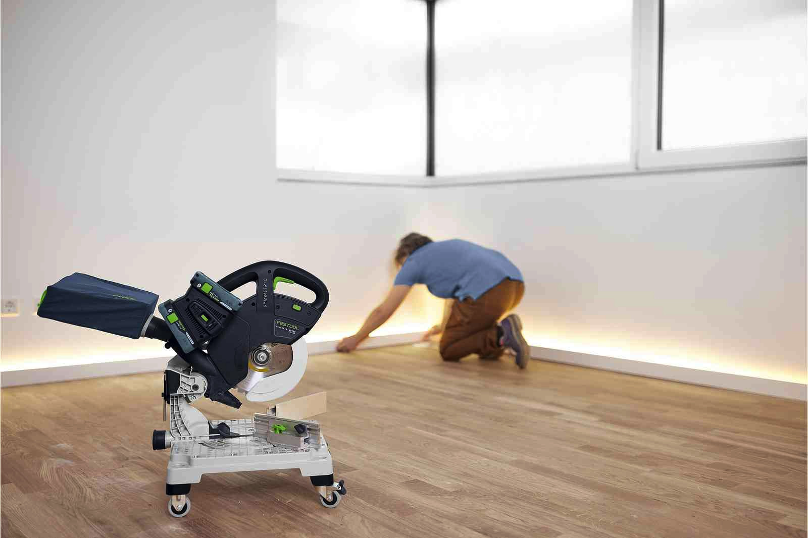 Schneller zum besten Ergebnis. Mit der SYMMETRIC sägt ihr eure Leisten doppelt so schnell wie mit einer Kappsäge - exakt und ohne zu rechnen. Mit der Schmiege können Innen- und Außenwinkel leicht aufgenommen und auf das symmetrisch laufende Anschlagsystem übertragen werden. Ihr sägt winkelhalbierend, mit einer Einstellung beide Leisten einer Ecke passgenau zu. Die Rollen bringen die Akku-Leistensäge im Handumdrehen in die richtige Position und machen euch in Kombination mit dem Doppelakku-System so mobil wie ihr es braucht. Kein Kabel stört – für einen optimalen Arbeitsablauf, auch in kleinen Räumen.