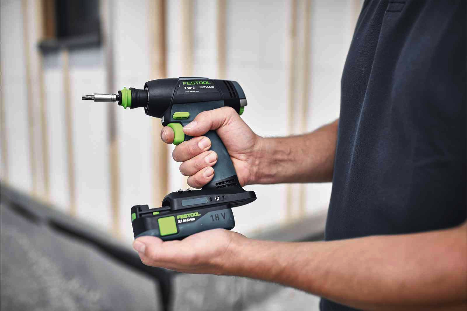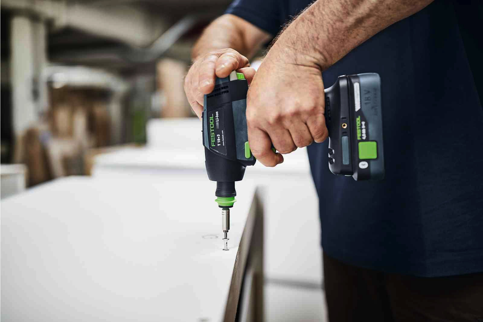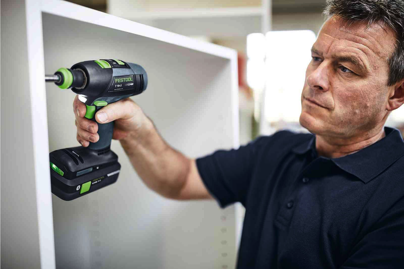 Für volle Flexibilität beim Bohren und Schrauben: vollelektronische Drehmomenteinstellung, CENTROTEC Schnellwechselsystem, Winkel- und Exzentervorsatz sowie Tiefenanschlag lösen jede Bohr- und Schraubanwendung. Die Kombination aus Li-HighPower Akkupack und bürstenlosem und somit wartungsfreiem EC-TEC Motor machen den Akku-Bohrschrauber T 18+3 leicht, langlebig und ausdauernd. Für einen sorglosen Alltag sind Akkuschrauber und Akkupack mit dem Festool Service rundum abgesichert. Erhältlich in T-Bauform oder – je nach individueller Vorliebe – als C 18 auch in der einzigartigen C-Bauform.