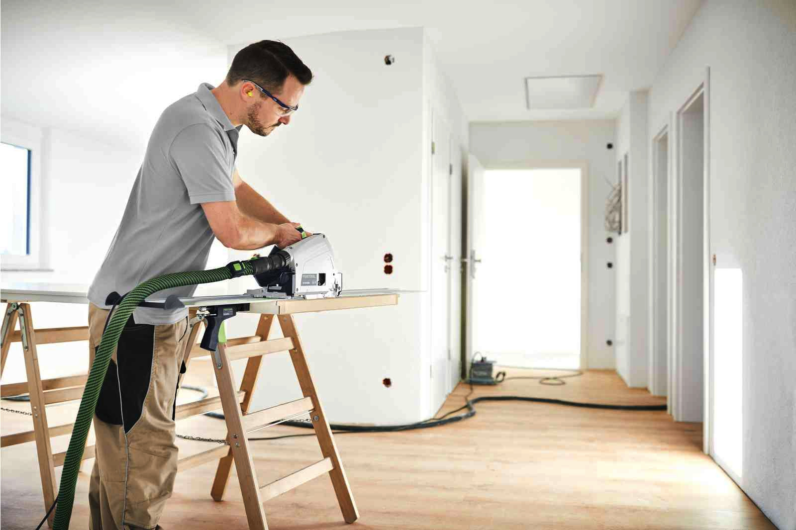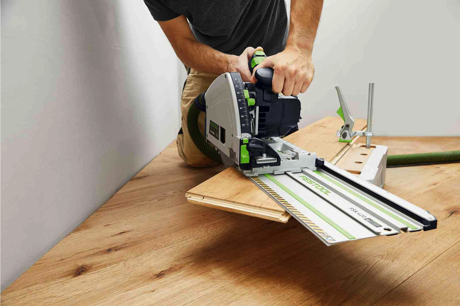 Festool Tauchsägen setzen seit Jahrzehnten den Maßstab im Sägen. Die TS 60 K definiert diesen noch einmal neu. Schnell wie ein Wimpernschlag schützt der einzigartige KickbackStop euer Werkstück und minimiert die Gefahr von Verletzungen. Perfekt abgestimmt auf das gesamte Festool Sägesystem und mit 60 mm Schnitttiefe könnt ihr euch mit der vielseitigsten Säge ihrer Art auf erstklassige Arbeitsergebnisse verlassen. Natürlich auch bei Gehrungsschnitten und massiven Platten. Unübertroffen ist die Möglichkeit, die TS 60 K jetzt mit der Kappschiene zu kombinieren. So entsteht mit wenigen Handgriffen ein einfach zu nutzendes Kapp-Sägesystem für präzise und winkelgenaue Schnitte. Mit dem bürstenlosen EC-TEC-Motor der neuesten Generation ist die kompakte Tauchsäge extrem robust und leistungsstark. Sie sägt wie durch Butter und vereint Präzision, Flexibilität und höchste Schnittqualität – bei gleichzeitig mehr Sicherheit. Die TS 60 K: Welten weiter.