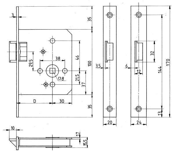 Dornmaß: 55 mm; Tür: gefälzt; Stulp: käntig 20 mm; Richtung: DIN rechts; VE: 1 St