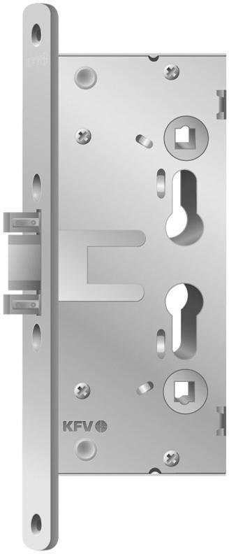 Für Feuerschutzabschlüsse, ohne Wechsel, Kasten verzinkt, Falle und Riegel verzinkt, Nuss 9 mm, zweiteilig, Dornmaß 65 mm, Entfernung 72 mm, Stulpmaß 24 x 235 mm, DIN links und DIN rechts verwendbar