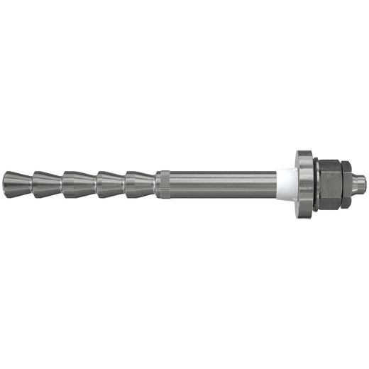 Der fischer Highbond-Anker dynamic FHB-A dyn wird mit dem Highbond-Spezialmörtel FIS HB verarbeitet. Er wird zur Aufnahme dynamischer Schwell- und Wechsellasten eingesetzt. Der zugelassene Anker mit seiner Konengeometrie sorgt für ein sicheres Nachspreizen unter dynamischer Beanspruchung und ermöglicht so den Einsatz in gerissenem Beton. Mit ihm werden Führungsschienen von Aufzügen, Fertigungsroboter, Portal- und Deckenlaufkräne oder Strahlventilatoren sicher befestigt. Die Brandeignung nach Feuerwiderstandsklasse R120, Varianten aus hochkorrosionsbeständigem Stahl oder eine zusätzliche Hülse für höhere Querkräfte bei der Ankerstange FHB-A dyn V, bietet ein zusätzliches Plus an Sicherheit.