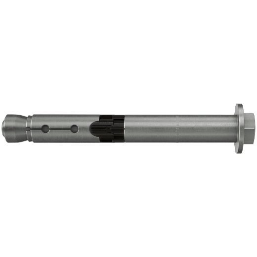 Der fischer Hochleistungsanker FH II S mit Sechskantkopf ist ein Hülsenanker aus galvanisch verzinktem Stahl. Der Anker wird in der zeitsparenden Durchsteckmontage gesetzt. Beim Anziehen des Ankers wird der Konus in die Spreizhülse gezogen und verspannt diese gegen die Bohrlochwand. Der schwarze Kunststoffring verhindert, dass sich der Anker mitdreht, und nimmt den Anzugsschlupf auf. Das Anbauteil wird dadurch an den Verankerungsgrund gezogen. Der fischer Hochleistungsanker FH II S mit Sechskantkopf ist bestens geeignet, um in gerissenem und ungerissenem Beton Konsolen, Stahlkonstruktionen und Kabeltrassen zu befestigen.