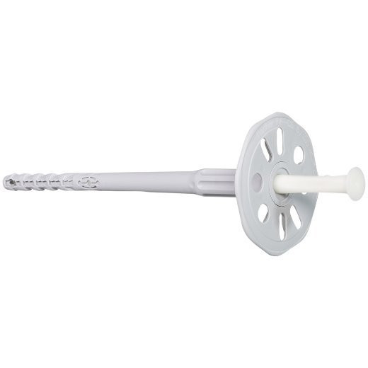 Der ETA zugelassene fischer Putzdübel FIF-CN II ist ideal, um druckfeste Dämmstoffe bis 350 mm Dicke in der Putzfassade wie Polystyroldämmplatten, Mineralwolleplatten, Holzwolle-Leichtbauplatten und Kork-/Kokosplatten in Beton, Voll- und Lochstein sicher zu befestigen. Der Putzdübel besteht aus einer grauen Dübelhülse mit aufgestecktem oktogonalemTeller und einem Stahl-Kunststoff-Nagel. Der FIF-CN II wird mit dem Hammer eingeschlagen. Der innovative Kunststoffnagel mit einer Stahlspitze ermöglicht hohe Lastenaufnahmen.