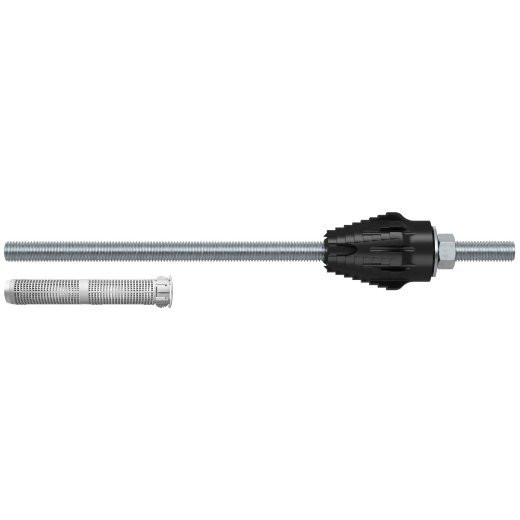 Das fischer Abstandsmontagesystem TherMax ist eine Lösung zur Befestigung in der Außenwand ohne Wärmebrücken im WDVS. Das System besteht aus einer speziellen Ankerstange aus galvanisch verzinktem Stahl mit einem glasfaserverstärkten Konus, Gewindestiften und Ankerhülsen für die Befestigung in Lochstein. In Kombination mit den fischer Hochleistungsmörteln FIS EM Plus, FIS V, FIS SB und FIS Green ist das System für zahlreiche Baustoffe zugelassen. Die Ankerstange mit dem glasfaserverstärkten Konus fräst sich selbstschneidend durch den Putz in den Dämmstoff. Die Ankerstange wird in der Ankerhülse mit einem Injektionsmörtel im Baustoff verankert. Der Konus am Kopf der Ankerstange unterbricht die Wärmebrücke und nimmt den Gewindestift aus nicht rostendem Stahl für die äußere Befestigung auf. Der TherMax befestigt schwere Lasten wie Markisen, Klimageräte und Satellitenanlagen in Beton, Porenbeton und Mauerwerk aus Loch- und Vollstein.