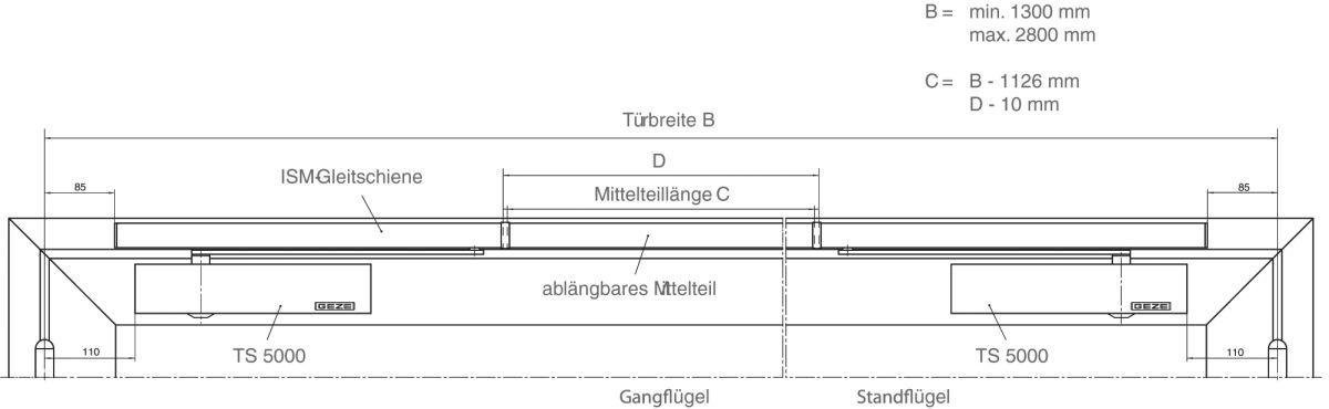 System aus zwei Türschließern TS 5000 und ISM Gleitschiene (2 TS 5000 seperat zu bestellen!)