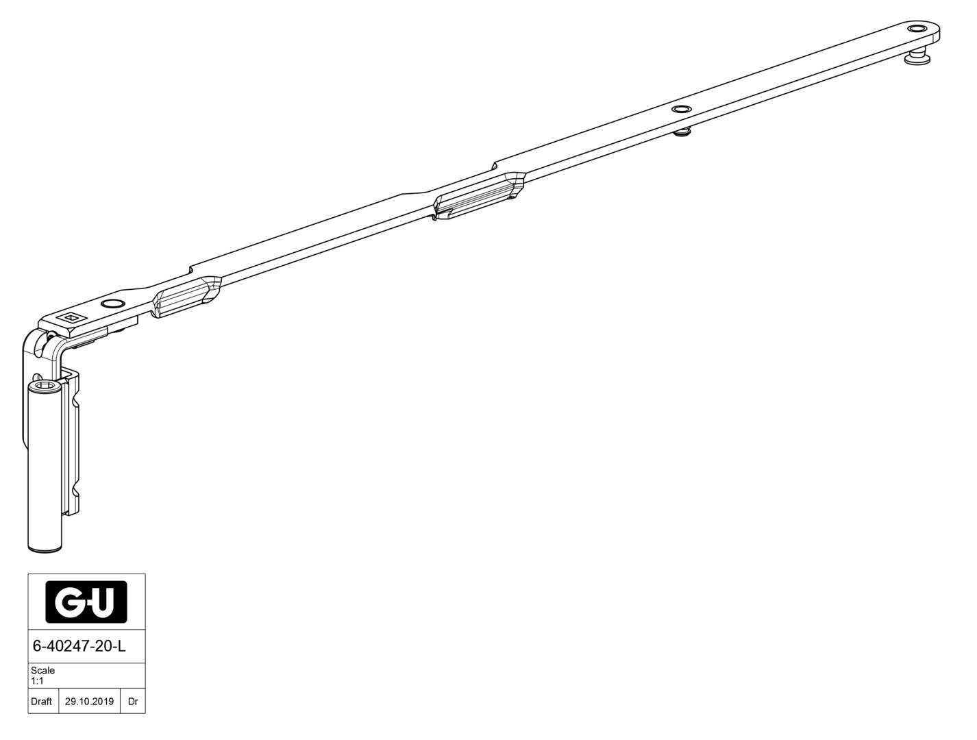 GU UNI-Jet D Scherenarm für KF mit Band - NL 13 - FFB 751-1200mm - Links