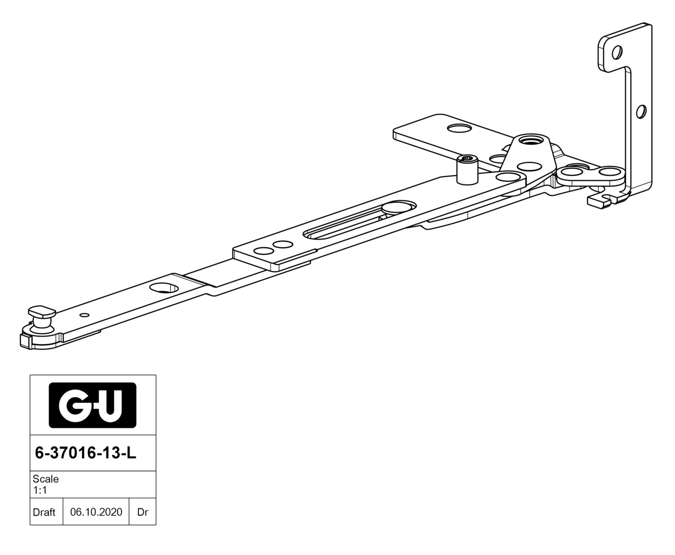 GU SC-F (verdeckt) Scherenarm 24x8mm DF NL13 FFB 360-1400mm li 6-37016-13-L-1
