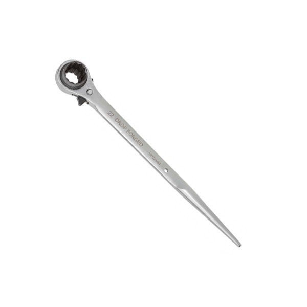 Aus Spezialstahl. Umschaltbar für Rechts- und Linksgang, mit Zentrierspitze und Sicherungsbohrung. Spezial-Werkzeug für den Gerüstbau. Ideal für alle im Gerüstbau verwendeten Muttern an Kupplungen. Mit spitz zulaufenden Griff zum Eindrehen der Gerüstösen und Ringschrauben, zum Richten von Dornen und Einziehen von Bohlen.
