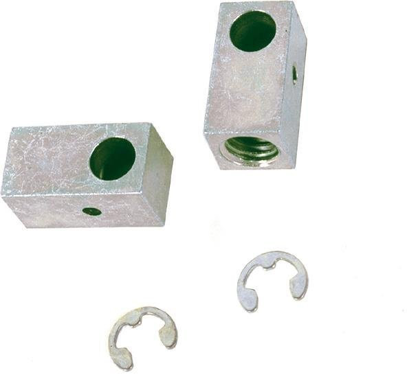 Stangenanschluss für Rundstange Aus 15 mm Vierkant, für Bolzen-Ø 10 mm, mit M10 Innengewinde. Satz à 2 Stück.