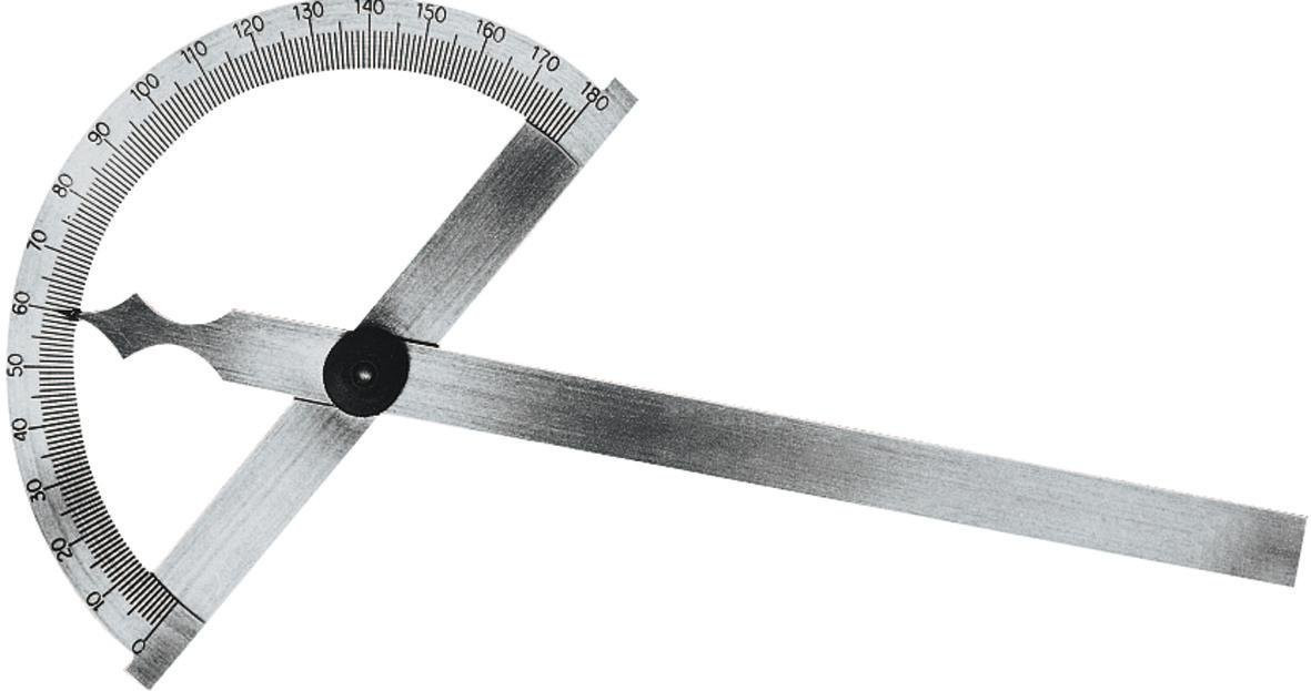 Von 0-180 Grad, mit Feststellschraube, Stahl, feinpoliert, Ableseskala verchromt, Skala graviert.