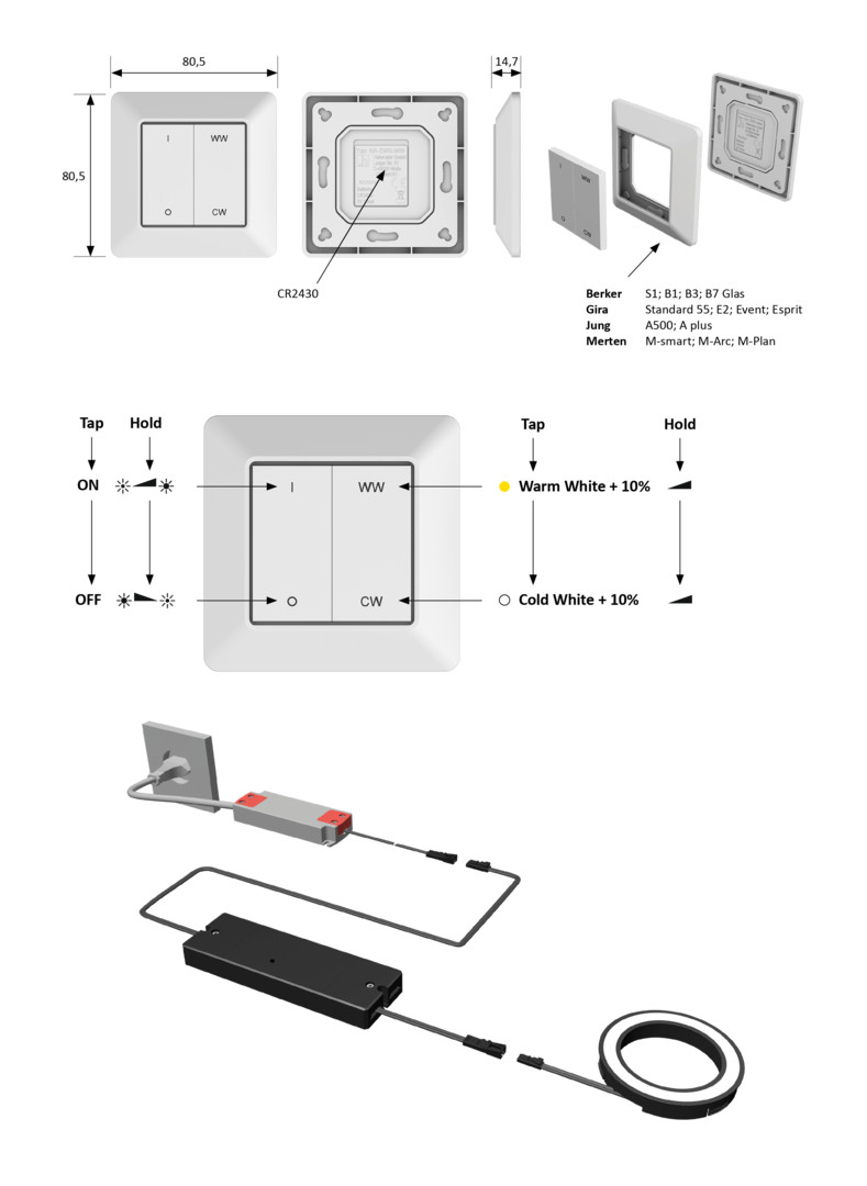 HALEMEIER 1-Kanal Zigbee Wandsender Dimmer und MultiWhite Steuerung