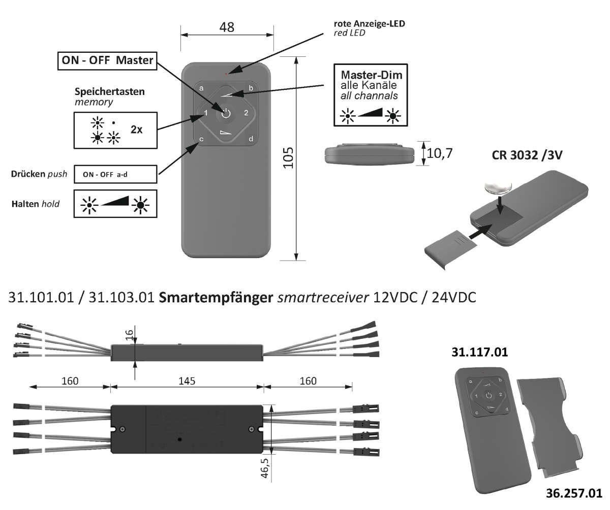 - Set besteht aus 4-Mitter Smart Fernbedienung und Smart Empfänger