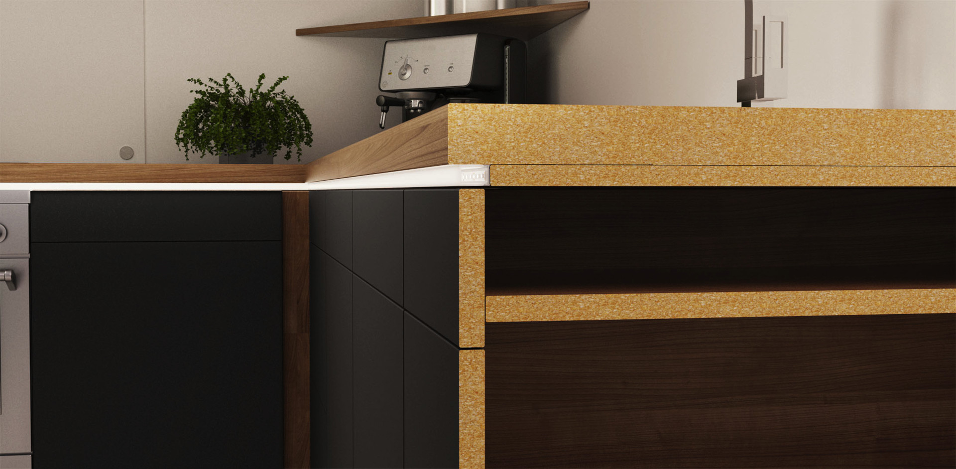 - Kantenbeleuchtung für Küchenarbeitsplatten oder vertikal zwischen Fronten