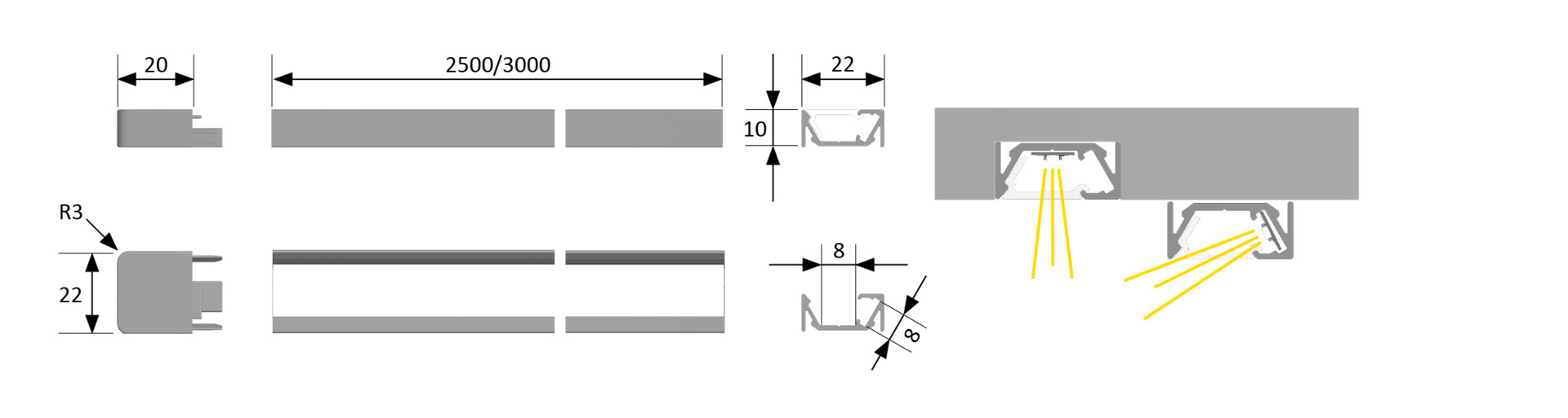 - Stimmungslicht in Kanten, Sockeln, Paneelen und Profilen