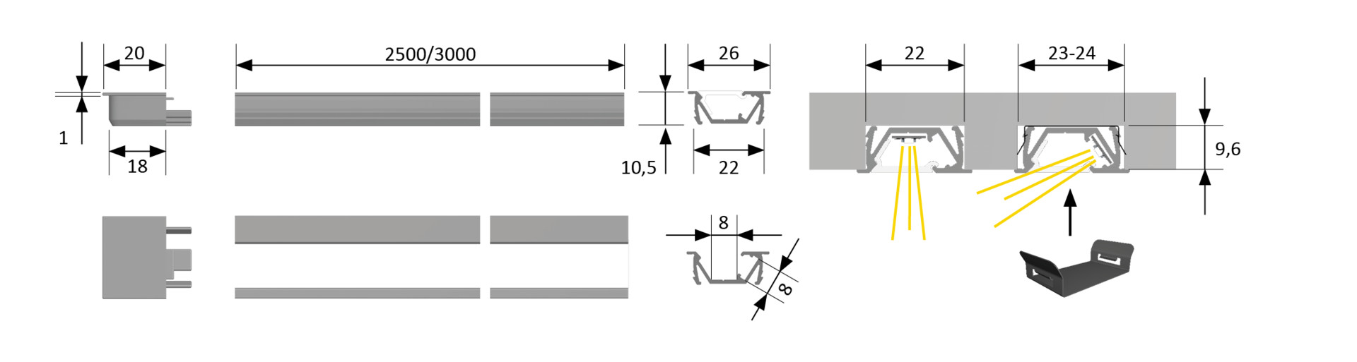 • Homogene Lichtlinie mit Versa ab 120 LED/m