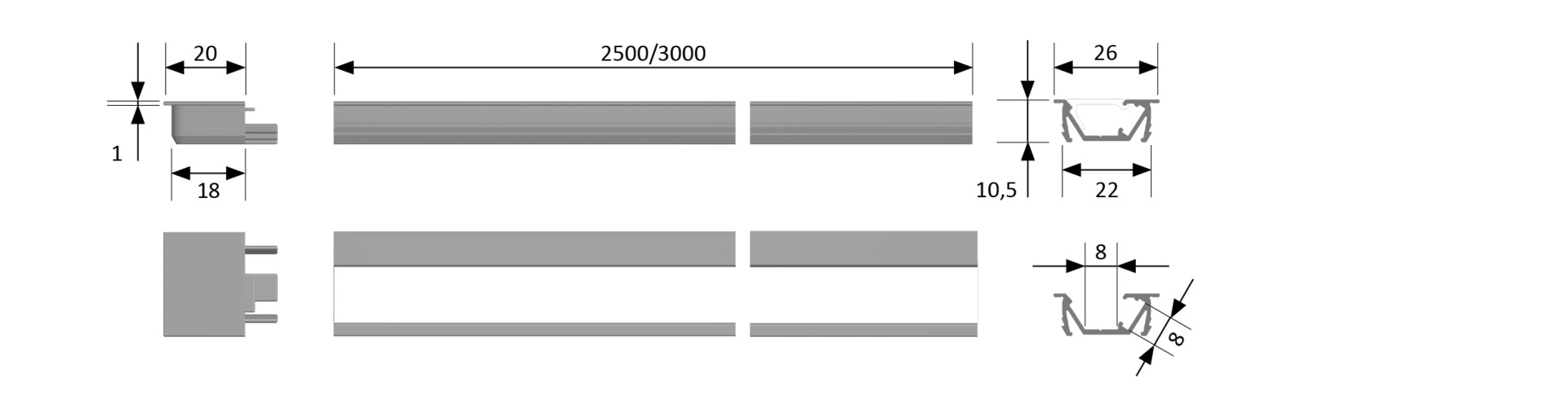 HALEMEIER ChannelLine G2 opal L=2500 Alu-und Abdeckprofil