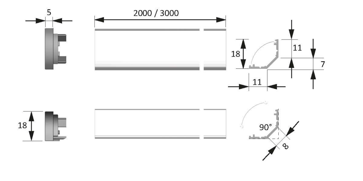- Aluminium-Anbauprofil mit opaler (transluzenter) Abdeckung