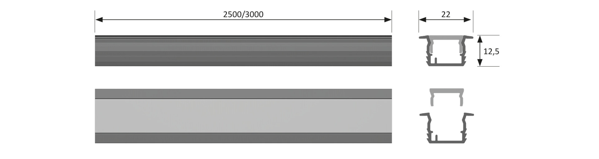 HALEMEIER ChannelLine K2 schwarz opal L=3000 Alu-und Abdeckprofil