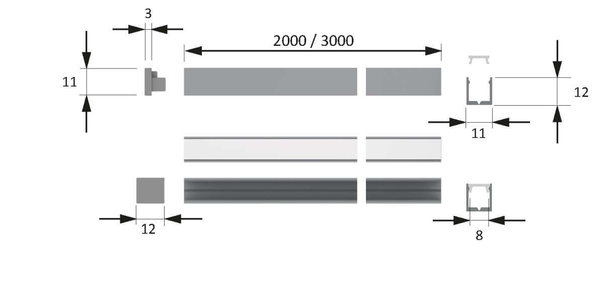 | Ausführung | 2000 mm, Alu/ Opal (10er Set) |