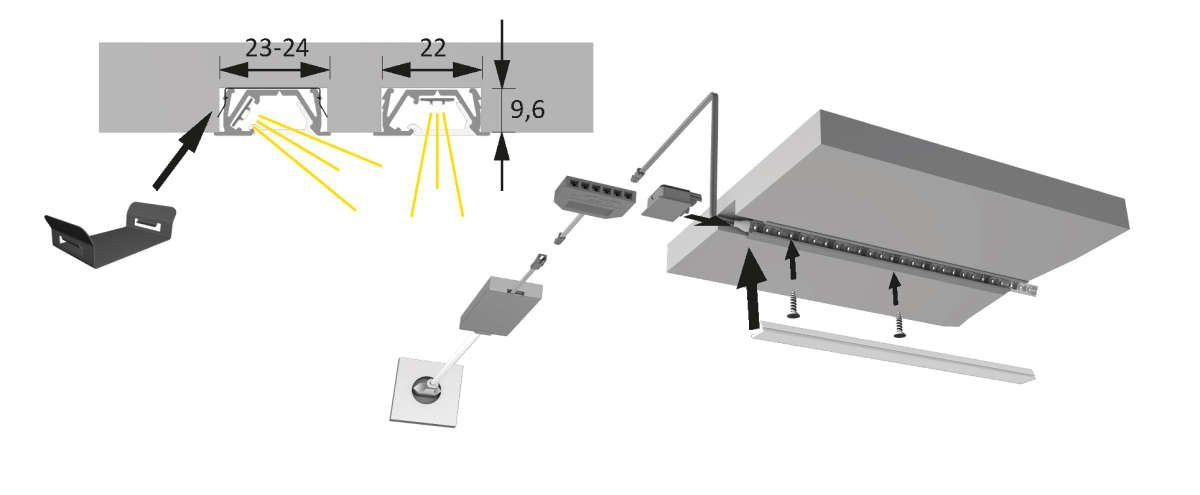LED ChannelLineG2 Profil, opal,10-er Set L=2000, Alu-und Abdeckprofil
