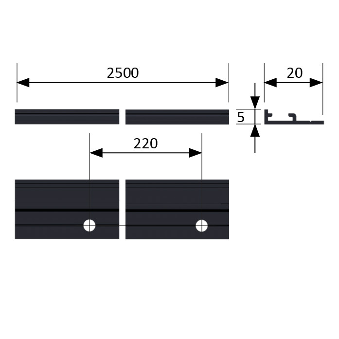 - Vorgebohrt alle 220 mm