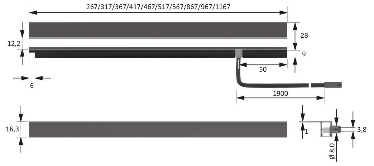 HandleLine i mw², EDS Optik, L=417 mm 12VDC, max. 3,9W, 2m Ltg. sw mit M1