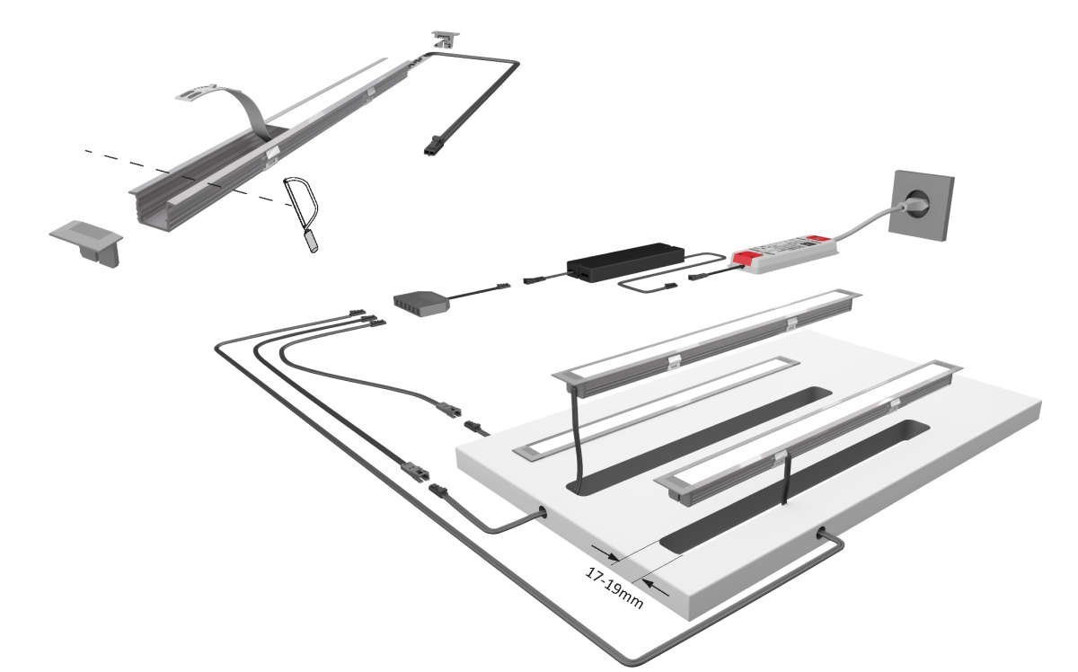 - Beim Kürzen der Leuchte wird eventuell eine zusätzliche Endkappe benötigt