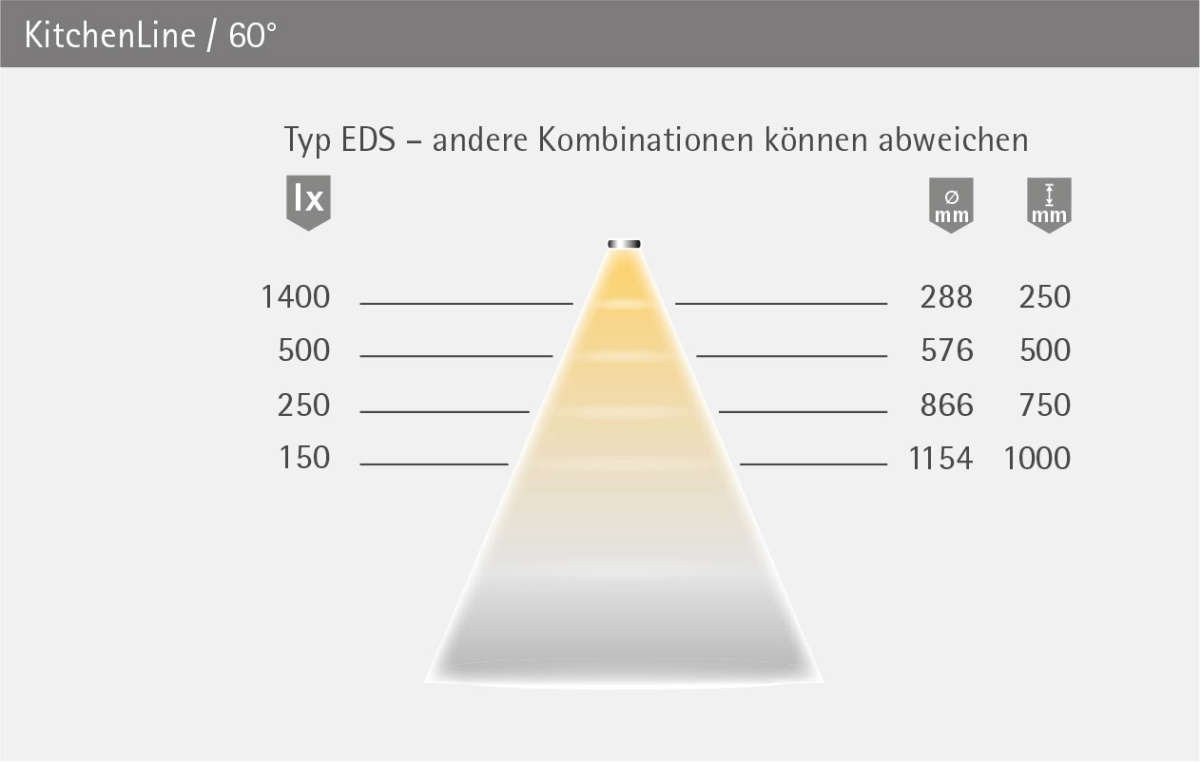 KitchenLine 867 mw² 12VDC 15,1W EDS Optik; Ltg. 1900mm, Zuführung b.85mm