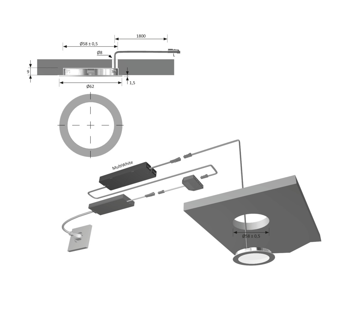 HALEMEIER LitePanel 58 Edelstahl Op. ww 12VDC 3,2W LTG 1,8m M1