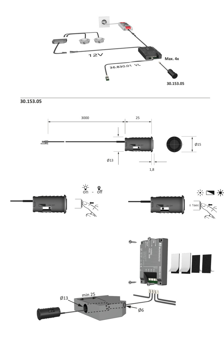 HALEMEIER MultiSwitch Schalter / Dimmer sw zum Einbohren LTG 3m schwarz